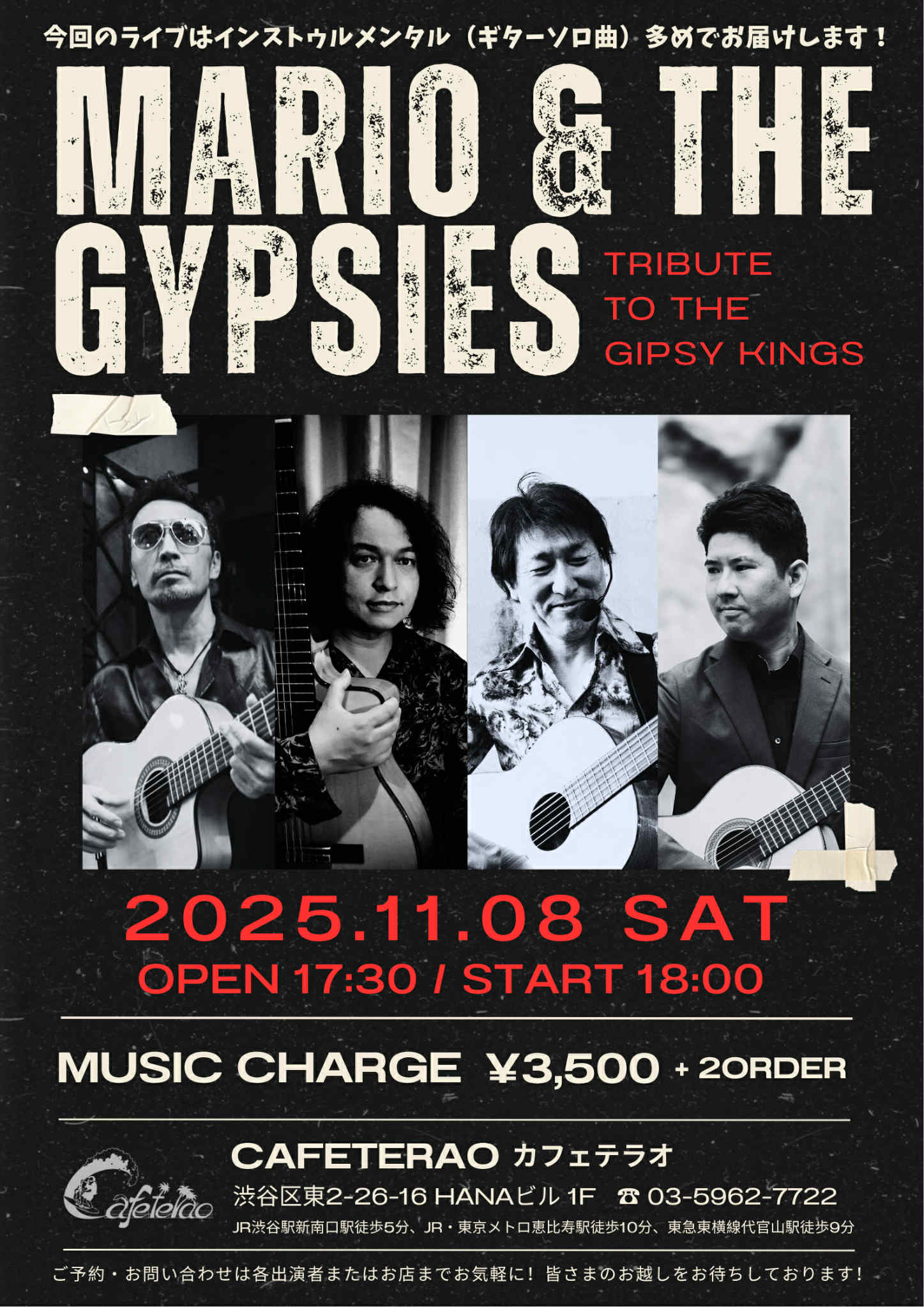 渋谷の素敵なアメリカンスタイルのカフェ「CAFETERAO」さんで、3回目のライブを開催します!